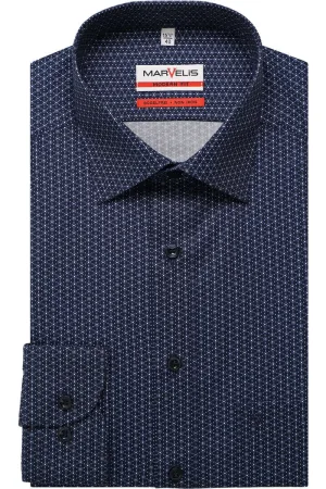 Marvelis Modern Fit Overhemd marine/wit, Motief