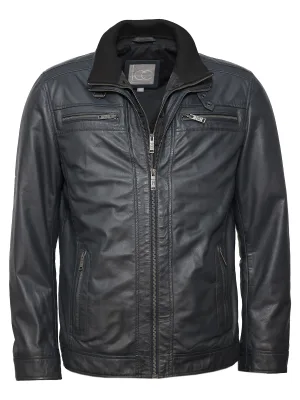 Zwarte, warme, halflange leren bikerjas voor heren – Colac