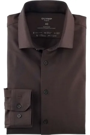 OLYMP Overhemd Level 5 24/Seven Pied de Poule Bruin