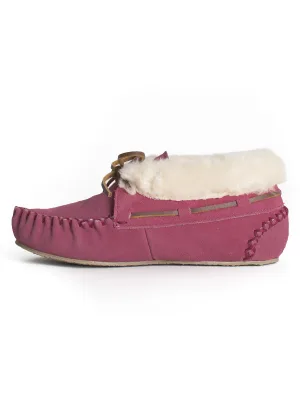 Minnetonka Lage schoen ‘Charley’ crème / bruin / framboos