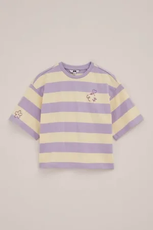 WE Fashion – Meisjes -shirt met streep – Oversized – Lila – Katoen –