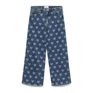 VERO MODA GIRL high waist wide leg jeans met hartjes medium blue denim