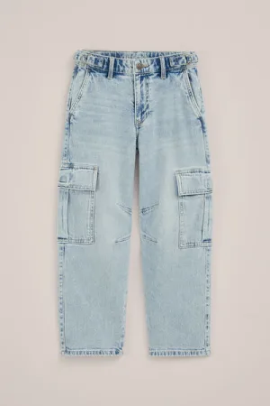 Blue Ridge – Meisjes loose fit cargo jeans – Loose fit – Lichtblauw – Katoen –