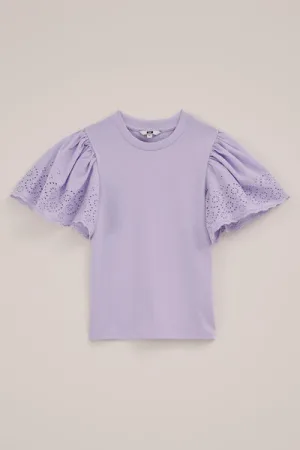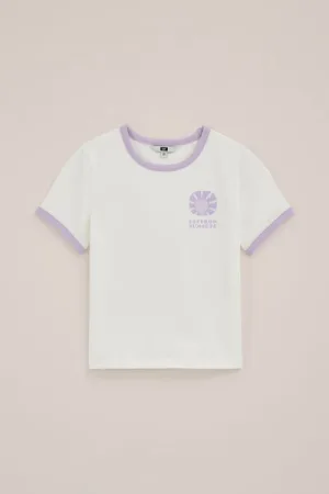 WE Fashion – Meisjes T-shirt met print – Slim Fit – Lila – Katoen –