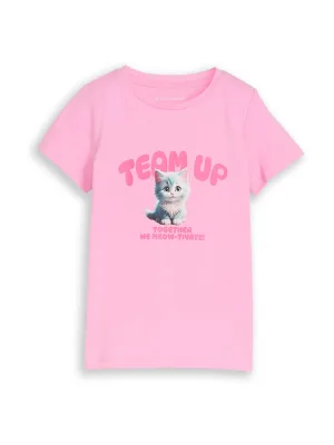 WE Fashion – Meisjes T-shirt met print – Oversized – Paars – Katoen –