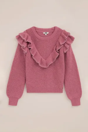 WE Fashion – Meisjes gebreide trui met ruches – Regular fit – Roze –
