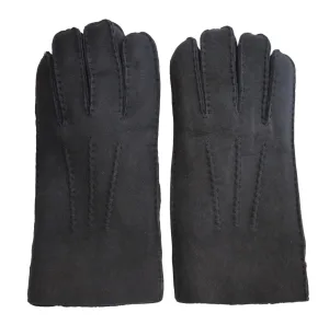 Heren zwarte luxe schapenvacht suède leren handschoenen