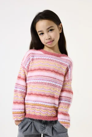 Looxs Revolution Gestreepte trui met open schouders voor meisjes in de kleur