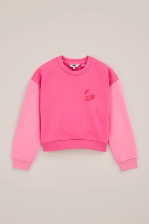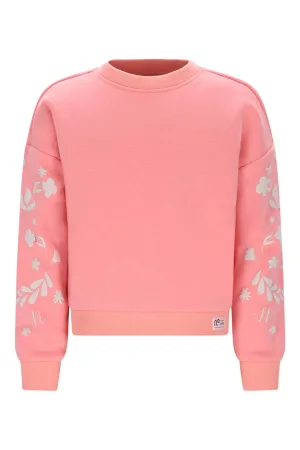 WE Fashion – MeisjeDjamila X Tina oversized sweater met opdruk – Oversized – Felroze – Katoen –