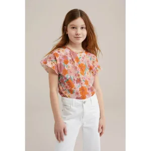 WE Fashion – Meisjes T-shirt met print – Regular fit – Felroze – Katoen –
