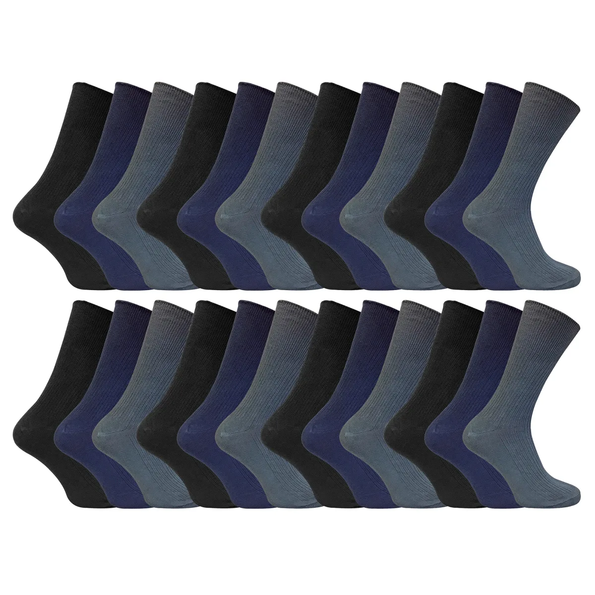 Ultiem Comfort en Bulkwaarde: 100% Katoenen Niet-Elastische Sokken: Ervaar ongeëvenaard comfort met onze 100% katoenen niet-elastische sokken. Ontworpen voor degenen die comfort boven alles stellen, bieden deze sokken een bulkwaarde-aanbieding met 24 paar inbegrepen. Gemaakt van het fijnste katoen, bieden deze sokken een luxueus en zacht gevoel dat je voeten de hele dag blij houdt. In tegenstelling tot gewone katoenen sokken tillen onze niet-elastische sokken het comfort naar een hoger niveau. Met hun niet-beperkende ontwerp bieden ze extra comfort en vrijheid van beweging. Perfect voor mensen met een slechte doorbloeding of gezwollen voeten en benen, deze sokken rekken mee met de natuurlijke contouren van je voeten zonder ze te knellen. Zeg vaarwel tegen ongemakkelijke knelringen en hallo tegen ultiem comfort. Niet alleen zijn deze sokken ongelooflijk comfortabel, maar ze zijn ook ademend, waardoor ze perfect zijn voor de zomermaanden. De lichte en ademende katoenen stof zorgt ervoor dat je voeten de hele dag koel en fris blijven. Verkrijgbaar in een verpakking van 12 paar, komen deze niet-elastische sokken in drie stijlvolle kleuren. Kies uit onze maatopties van 6-11 UK of 11-14 UK om de perfecte pasvorm voor je voeten te vinden. Gemaakt van 100% biologisch katoen, zijn deze sokken niet alleen comfortabel, maar ook milieuvriendelijk. En maak je geen zorgen over het gedoe van handwas, want deze sokken zijn veilig machinewasbaar. Extra Productdetails:: - 24 paar inbegrepen voor bulkwaarde - Gemaakt van 100% katoen voor ultiem comfort - Niet-elastisch ontwerp voor extra comfort - Verkrijgbaar in drie stijlvolle kleuren - Maatopties: 6-11 UK / 11-14 UK - Machinewasbaar voor gemak. Ervaar het ultieme comfort en de waarde met onze 100% katoenen niet-elastische sokken. Upgrade je sokkenassortiment vandaag nog!