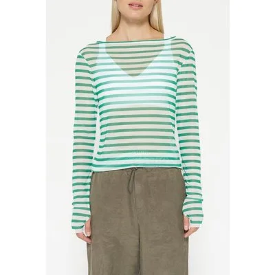 10DAYS Mesh Tee Stripe Ecru/apple Green