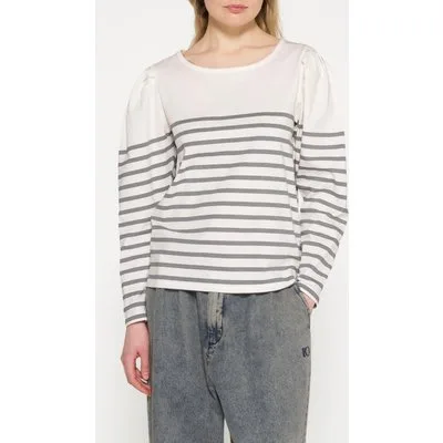 10DAYS Puff Long Sleeve Tee Stripes Ecru/graphite