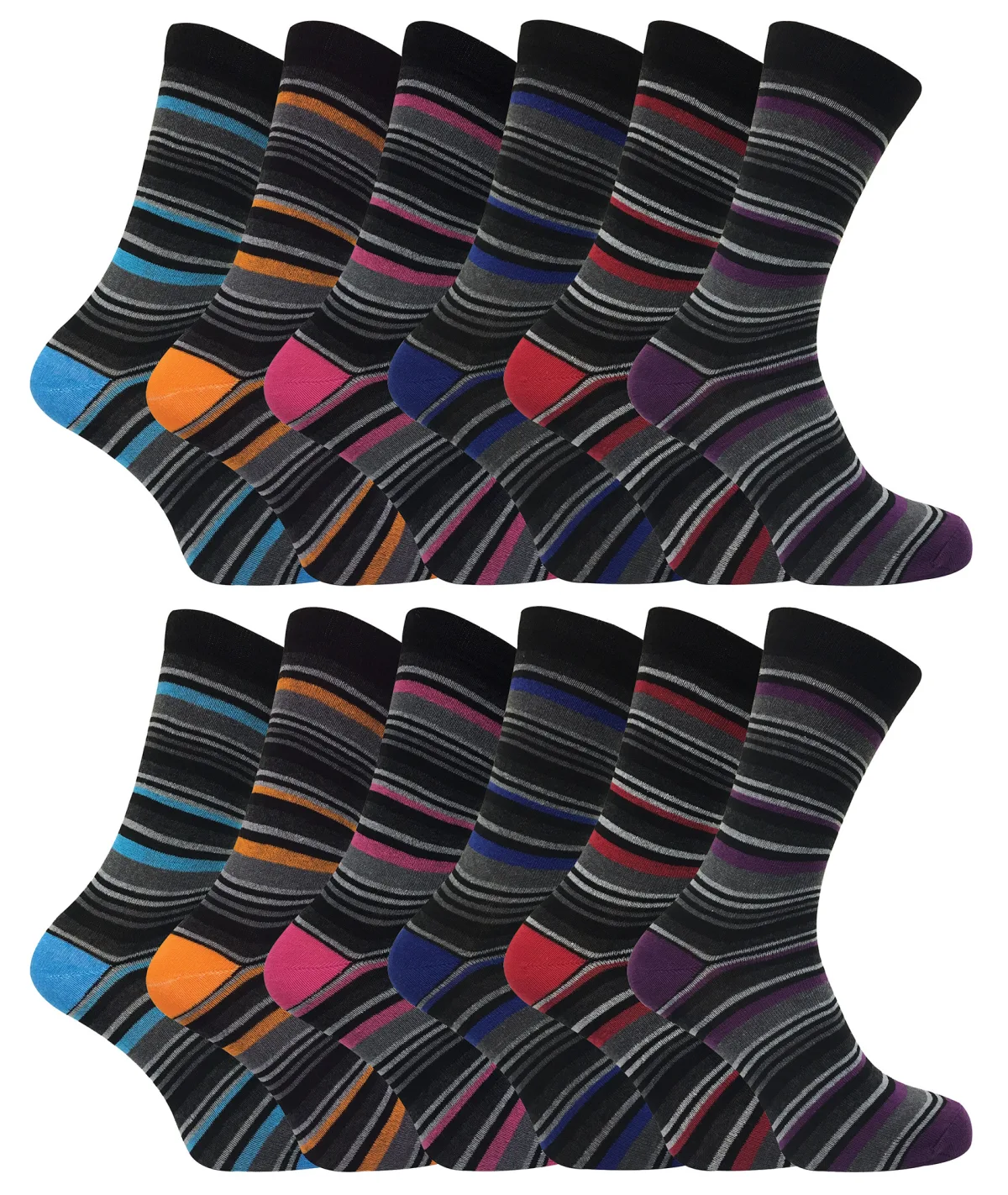 12 paar multiverpakking katoenen gestreepte herensokken - Diverse