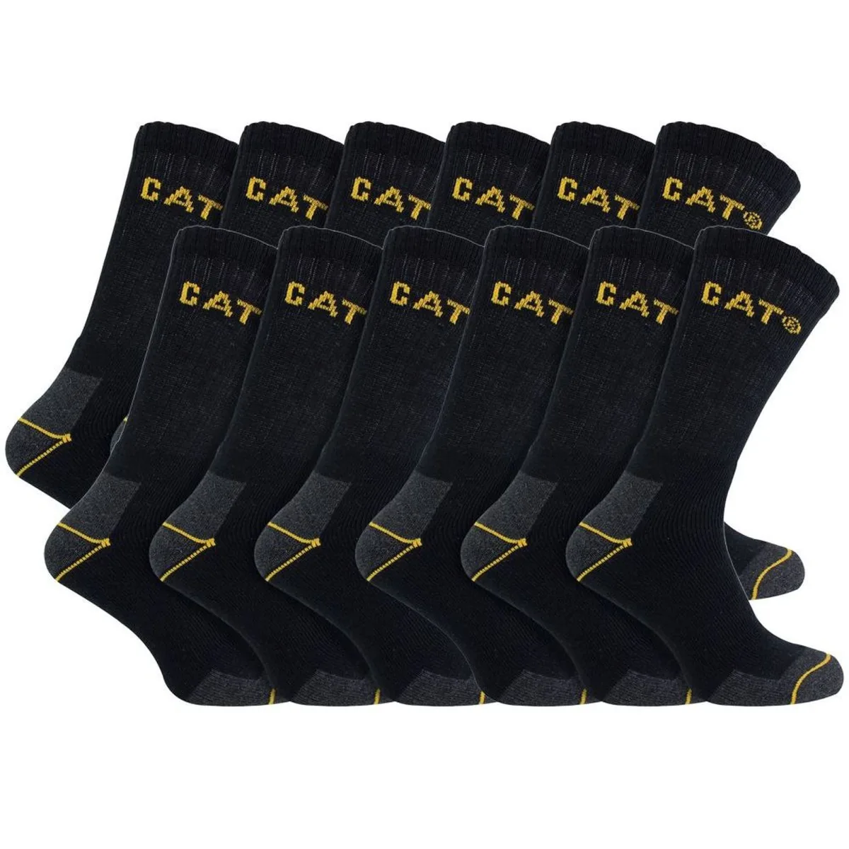 CAT 12 Pack Real Work Sokken: Maak kennis met de ultieme werker, de 12 Pack Caterpillar Real Work Sokken. Ontworpen voor degenen die stevig staan in uitdagende omgevingen, zijn deze CAT Crew sokken een bewijs van duurzaamheid en comfort. Ervaar bescherming met een versterkte teen en hiel, speciaal ontworpen om je voeten te beschermen binnen stevige werkschoenen. Ervaring heeft ons geleerd dat comfort, gecombineerd met bescherming, van groot belang is. Daarom beschikken deze sokken over comfortabele padding in de hiel en teen, die zorgt voor maximale bescherming waar dat het meest nodig is. Met minimale compressie wordt de doorbloeding verbeterd, wat een betere voetgezondheid bevordert tijdens lange werkdag. Dankzij de uitlijnpunten op de teen en hiel is de juiste positie moeiteloos te bereiken, waardoor het ongemak van stof dat tegen de huid schuurt wordt voorkomen. Gemaakt van zacht, duurzaam materiaal, beloven deze sokken niet alleen comfort, maar garanderen ze ook een lange levensduur. Ze zijn bovendien machinewasbaar op 40 graden Celsius, wat zorgt voor gemakkelijke verzorging. Verkrijgbaar in een handige verpakking van drie paar, zijn ze ideaal voor gebruik met stalen neuzen of wandelschoenen, en bieden ze veelzijdigheid voor elke man. Extra Productdetails: - Versterkte duurzaamheid - Maximale padding - Minimale compressie voor betere doorbloeding - Uitlijnpunten om wrijving te voorkomen - Comfort en zachtheid - Machinewasbaar - Drie paar verpakking voor praktische gebruik - Perfect voor stalen neuzen en wandelschoenen