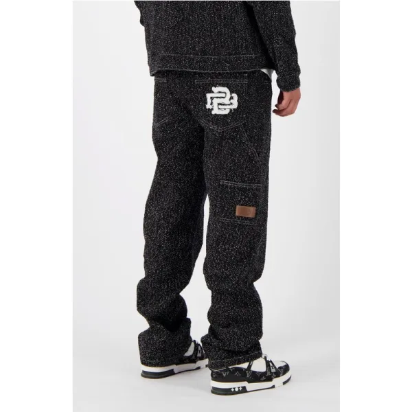 65% katoen | 33% polyester | 2% spandex Baggy fit Rechte pijp Knoopsluiting Boucle denim stof met een gespikkelde textuur Geborduurd logo op de achterzak Twee zakken aan de voorkant Merk leren patch Kan gecombineerd worden met het Boucle Denim Jacket