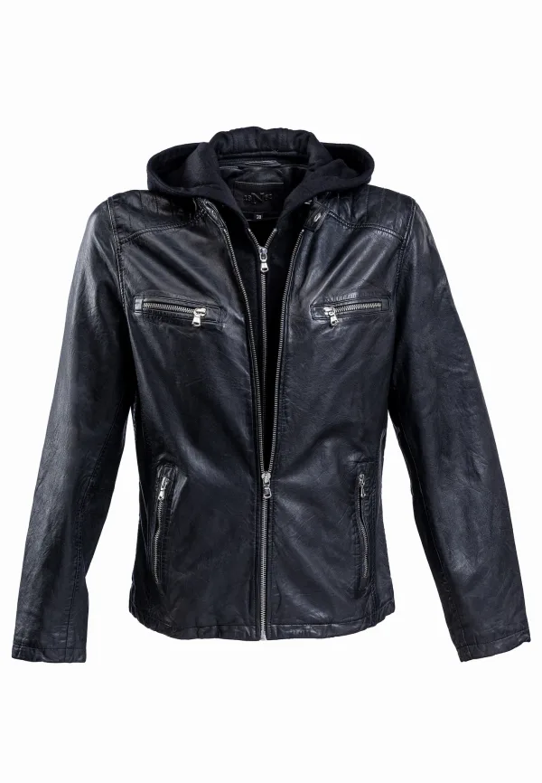 Design: Ritssluiting, Met capuchon; Voering: Licht gevoerd; Materiaal: Leer; Motief: Effen; Extra's: Buigzame grip; Pasvorm: Normale pasvorm