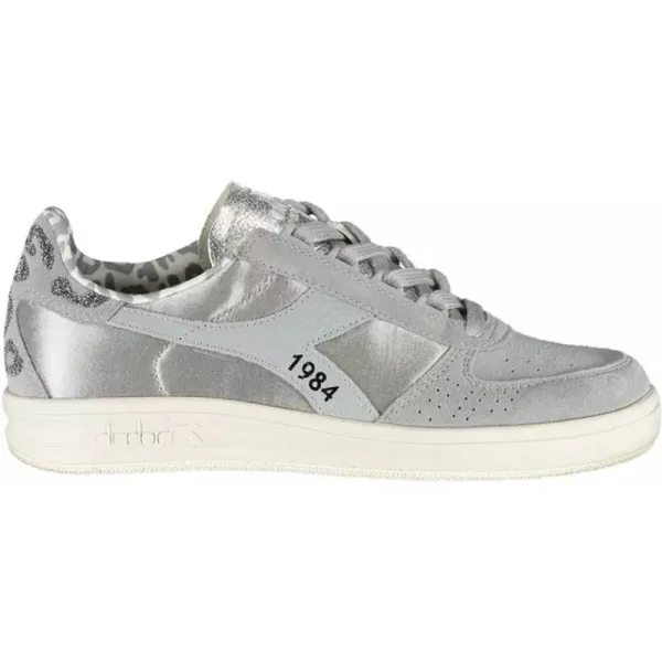 Stap naar buiten, onderscheid je, straal. Ervaar de perfecte mix van schitterende stijl en comfort de hele dag door. Deze Diadora 1984 sneakers tillen je dagelijkse look naar een hoger niveau met een vleugje elegantie, dankzij het zilveren satijnen bovenwerk. De glitter leoprint hak voegt een unieke, opvallende twist toe. Geniet van een duurzame en klassieke esthetiek met suède overlay. Ontworpen voor dagelijks casual gebruik, bieden deze lichte sneakers zowel mode als functie. De veter sluiting zorgt voor een veilige pasvorm. Voordeel van de eenvoudige verzorgingsconstructie is dat je ze gemakkelijk kunt opfrissen.