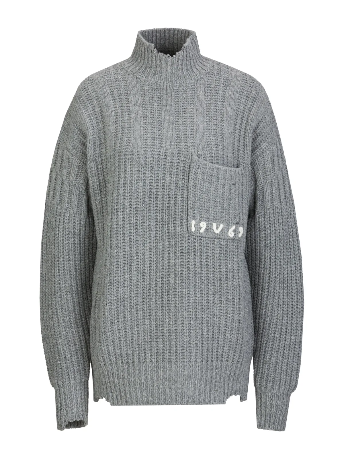 19V69 ITALIA Trui ‘Rosanna’ grijs gemêleerd / wit
