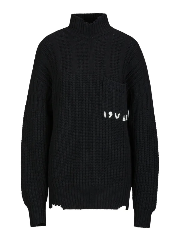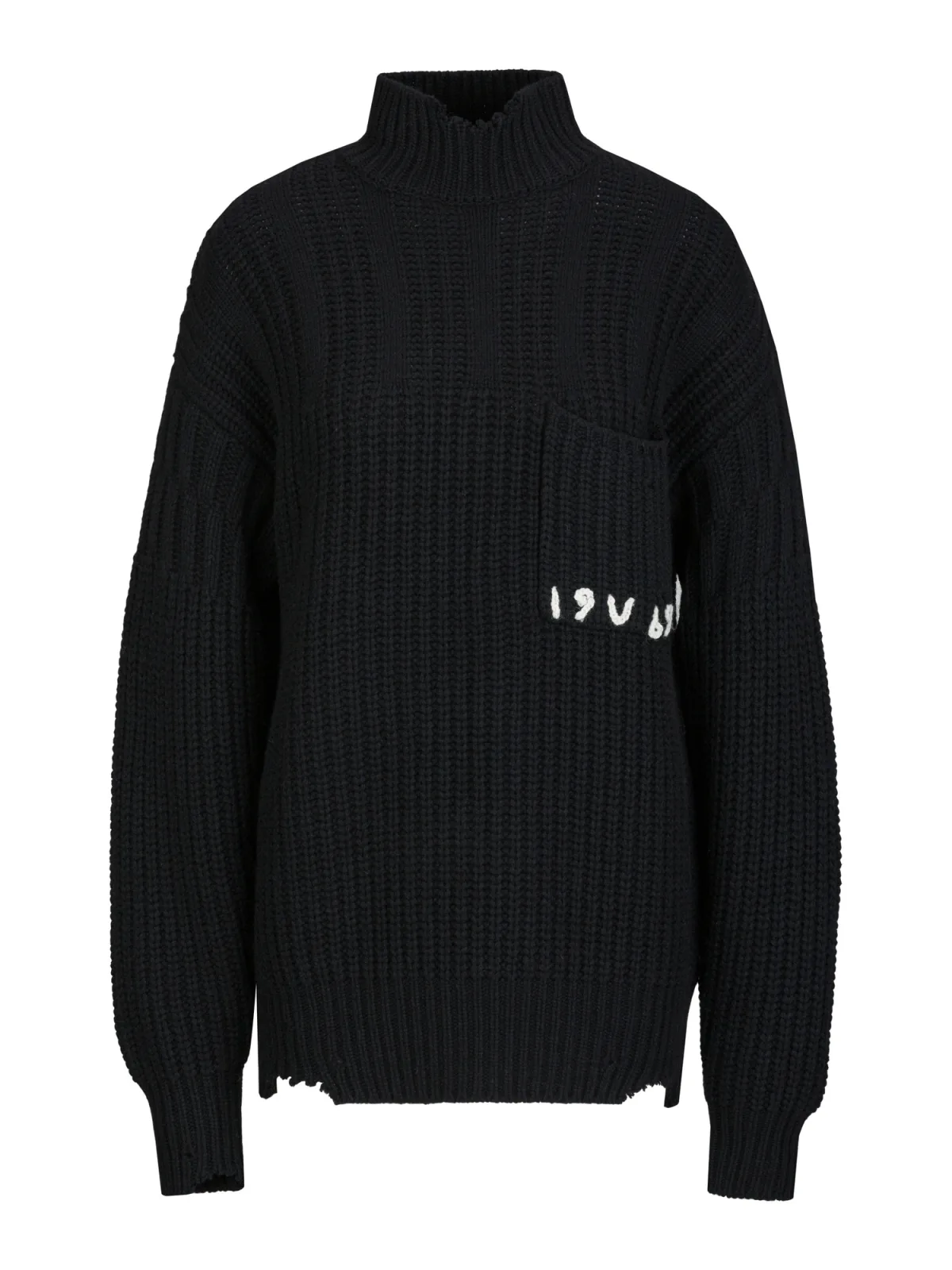 Design: Geribbelde kraag, Geribbeld gebreid, Borstzak; Materiaal: Knitwear; Halstype: Opstaande kraag; Motief: Tekst print; Extra's: Fully fashioned; Pasvorm: Losse pasvorm; Armlengte: Lange mouw; Lengte: Lange pasvorm