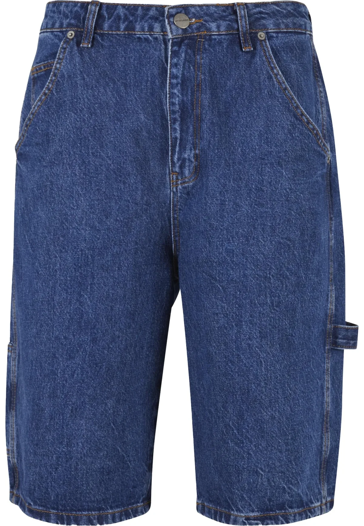 Design: 5-pocket-style, Opgezette zakken; Type sluiting: Ritssluiting; Materiaal: Denim; Motief: Effen; Extra's: Studs; Wassing: Blauw denim; Lengte: Knielengte; Pasvorm: Regular