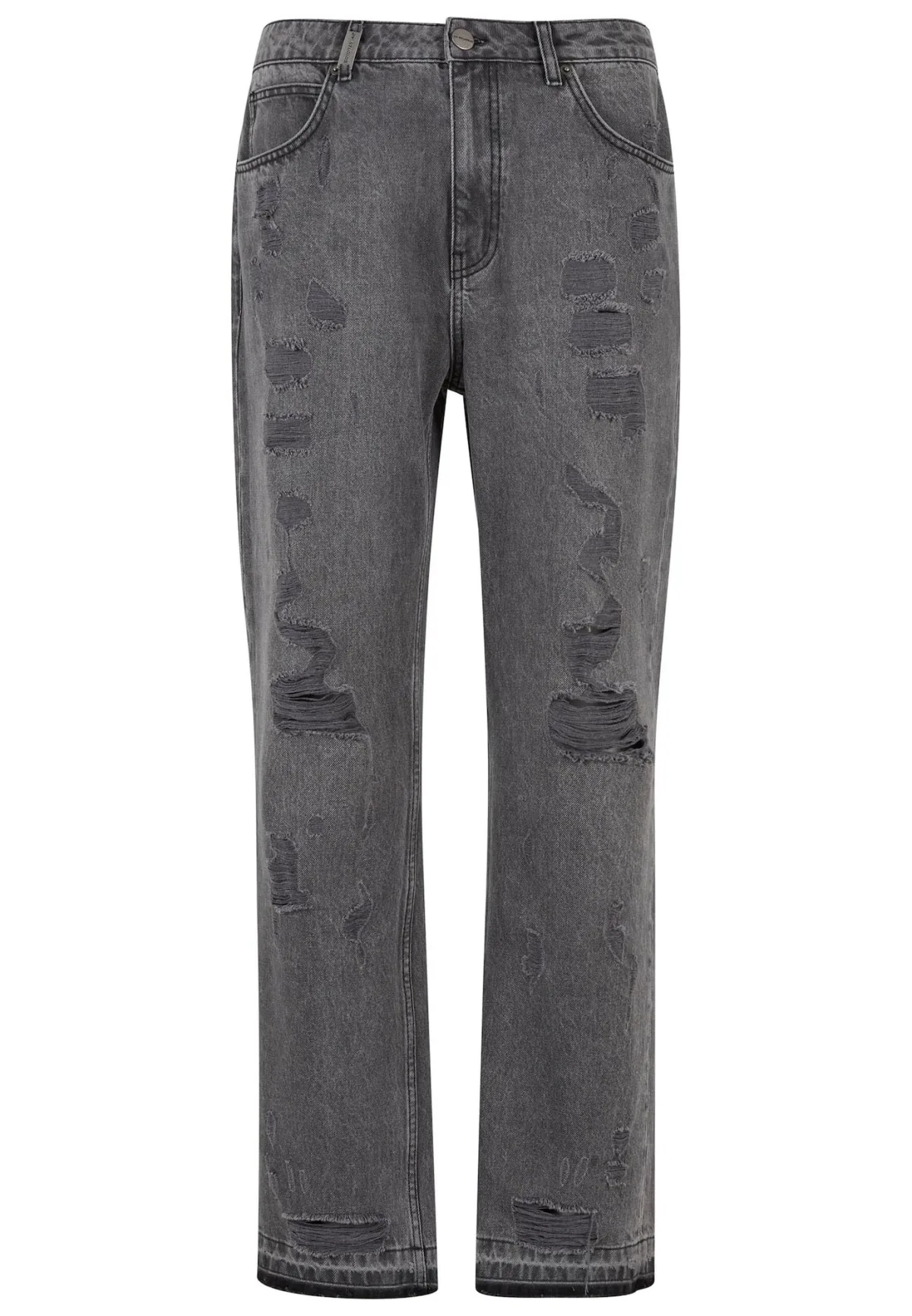 Design: Ritssluiting, 5-pocket-style, Knop sluiting; Type sluiting: Knoopsluiting; Materiaal: Denim; Motief: Effen; Extra's: Studs, Gewassen effect, Riemlussen; Wassing: ripped; Lengte: Lang/maxi; Pasvorm: Losse pasvorm; Pasvorm: Loosefit
