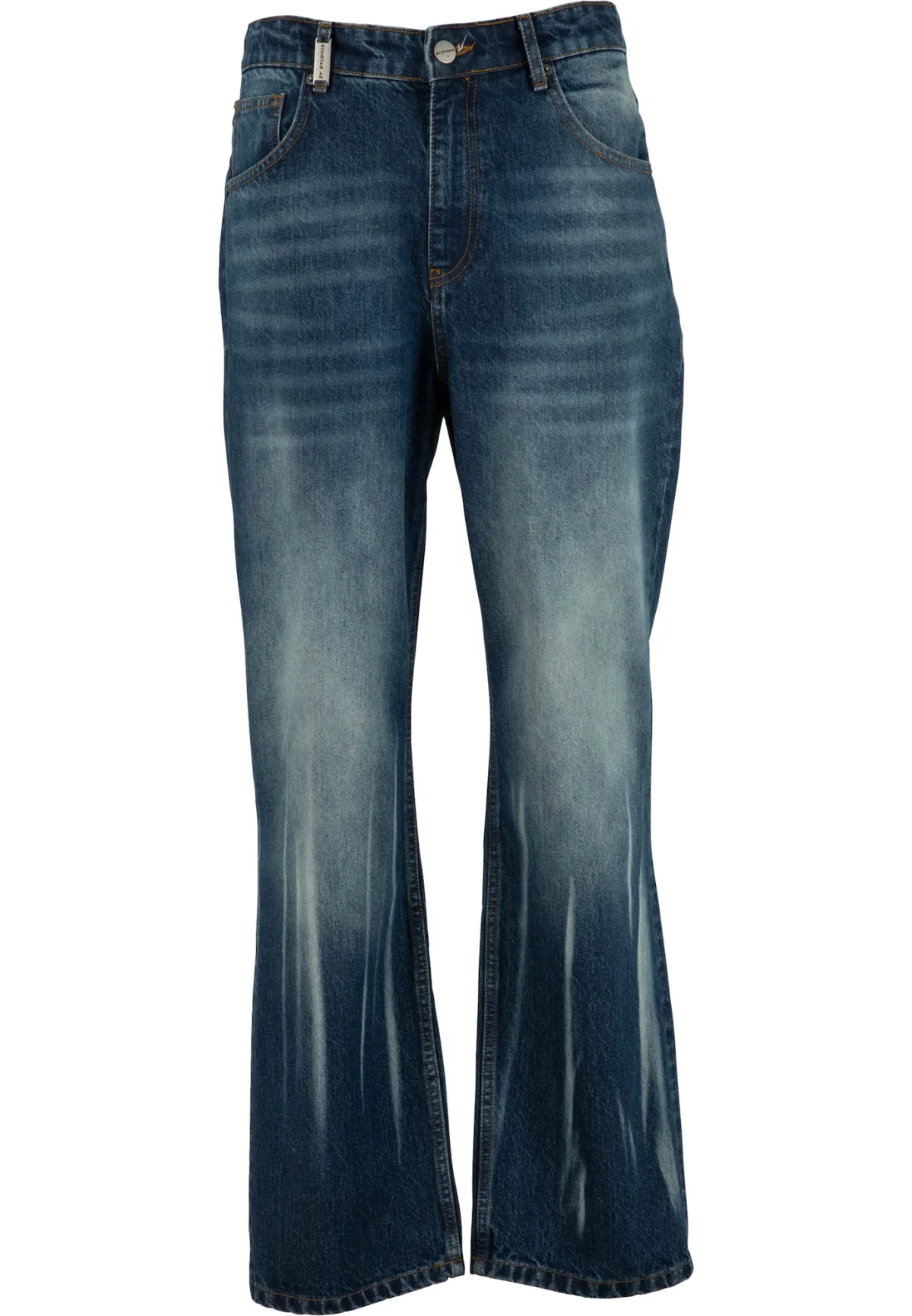 Design: Ritssluiting, 5-pocket-style, Achterzak, Zakken aan de zijkant; Type sluiting: Ritssluiting; Materiaal: Denim; Motief: Effen; Extra's: Contrasterende naden, Label patch/label flag, Riemlussen; Wassing: Heavy washed; Lengte: Lang/maxi; Pasvorm: Losse pasvorm; Pasvorm: Flared
