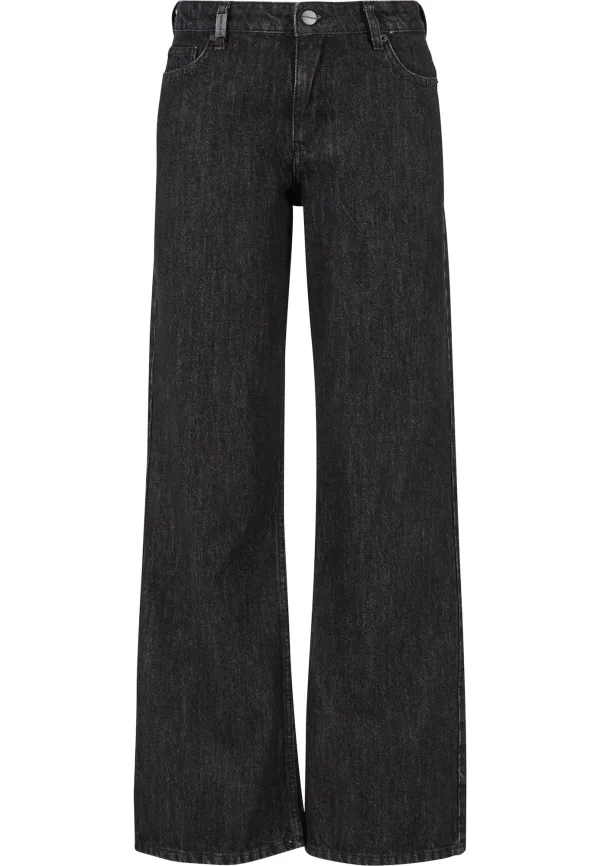 Design: Gevoerde zoom/rand, Ritssluiting, 5-pocket-style, Knop sluiting; Type sluiting: Ritssluiting; Materiaal: Denim; Motief: Effen; Extra's: Studs, Label patch/label flag, Op staal naden, Stevige stof, Riemlussen; Wassing: Rinsed/dark washed; Lengte: Lang/maxi; Pasvorm: Wide leg; Taillehoogte: Mid waist