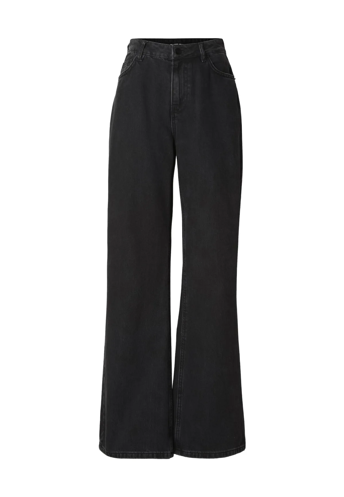 Design: Knop placket; Type sluiting: Ritssluiting; Materiaal: Denim; Motief: Effen; Extra's: Riemlussen; Wassing: Colored denim; Lengte: Lang/maxi; Pasvorm: Wide leg; Taillehoogte: Mid waist