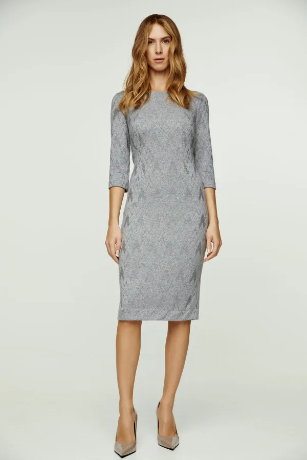 3/4 mouw grijs jacquard jurk met pasvorm Prijzen