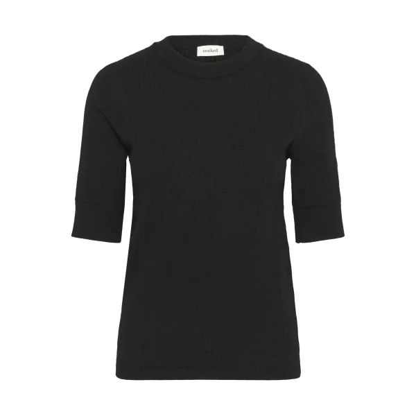 Design: Rechte zoom, Geribbeld gebreid; Materiaal: Knitwear; Halstype: Ronde hals; Motief: Effen; Details: Mesh; Extra's: Fully fashioned, Met textuur; Pasvorm: Slanke pasvorm; Armlengte: Halve mouw; Lengte: Normale lengte