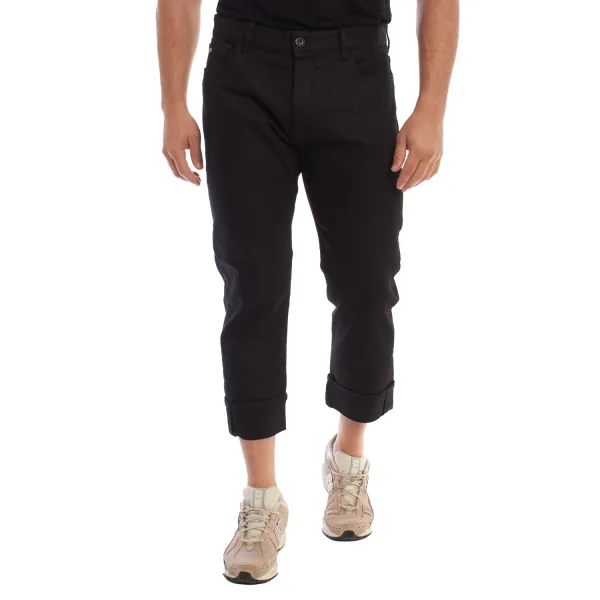 Een denim broek van Emporio Armani met vijf zakken en knoopsluiting die elegantie en een casual stijl combineert. Hij is gemaakt van denim en heeft een rechte en comfortabele pasvorm, ideaal voor een veelzijdige en moderne look. De met metaal ingegraveerde details met het merklogo, discreet geplaatst op de kleine zak en op de achterzak, zorgen voor een opvallende en exclusieve touch. De gerolde zomen bij de enkels voegen een eigentijds accent toe, waardoor deze broek een perfecte keuze is voor zowel casual combinaties als meer verfijnde outfits met een vleugje raffinement. Samenstelling: 98% Katoen, 2% Elastaan Onderhoud: - Machinewas op zachte cyclus. - Gebruik gelijkaardige kleuren in de was. - Vermijd het gebruik van bleekmiddelen. - Drogen op lage temperatuur in de droger. - Strijken op lage temperatuur. - Niet chemisch reinigen.