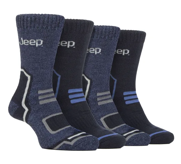Jeep Heren 4-Pack Thermische Gestreepte Bootsokken: Verban koude voeten voorgoed met een pack (of meer!) van deze Jeep Thermische Gestreepte Bootsokken! Ontworpen om je warm en comfortabel te houden, zijn deze dikke en gezellige 4-pack heren thermische bootsokken perfect voor al je activiteiten. Onze bootsokken hebben standaard teennaad en boorden, waardoor ze geschikt zijn voor dagelijks gebruik. Versterkt met volle terry lusvering van boord tot teen, bieden ze niet alleen bescherming maar ook isolatie voor die koude momenten. Gemaakt van Jeep's thermische performance polyblend, zijn deze sokken ontworpen om je warm en comfortabel te houden tijdens de koudere maanden. De dubbele laag elastische geribbelde boord zorgt voor een perfecte pasvorm, terwijl ingebouwde voetboogondersteuning je een veiliger en stabieler gevoel geeft. Maar warmte is niet hun enige kenmerk! Deze sokken zijn ook opvallend, met gestreepte garen in meerdere tinten en gedraaide draad, gecombineerd met gedurfde Jeep-logo's die in de stof zijn geweven. Dankzij de performance poly zijn deze sokken zacht en ademend. Dit 4-paar pakket is precies wat je nodig hebt om de kou te verslaan en je voeten lekker warm te houden, of je nu aan het hiken bent, aan het werk of gewoon thuis aan het ontspannen. Met hun reguliere dikte en ongeëvenaarde thermische prestaties zijn deze Jeep Thermische Gestreepte Bootsokken jouw ultieme oplossing om je voeten warm en gezellig te houden, ongeacht het avontuur! Deze Jeep Sokken zijn gemaakt van kwaliteitsmateriaal bestaande uit 58% Acryl, 38% Polyester en 4% Elastaan en zijn verkrijgbaar in 6 verschillende kleuren/stijlen. Ze zijn ook machinewasbaar. Extra Productdetails: Jeep Thermische Bootsokken Performance Poly Blend Dubbel Laag Geribbelde Boord Warm & Comfortabel Terry Gelus Cushioning Voetboogondersteuning Ideaal Voor Winter Gestreepte Marlpatronen 6 Stijlen/Kleuren Beschikbaar Machinewasbaar.