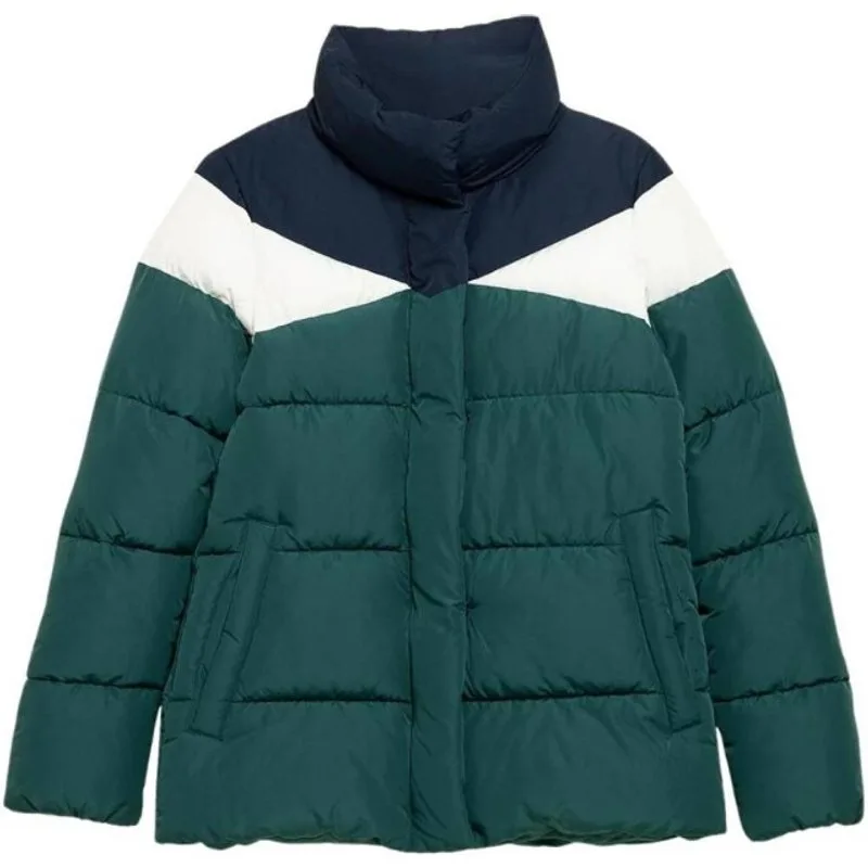 100% Polyester. Vulling: Synthetisch dons. Ontwerp: Kleurenblok, gewatteerd. Stoftechnologie: Vochtafvoerend, Thermisch. Mouwtype: Met lange mouwen. Halslijn: Staande Kraag. Windflap. Zakken: 2 Zijzakken. Sluiting: Volledige rits, drukknoop. S: 36 in. M: 37,5 in. L: 40 in.