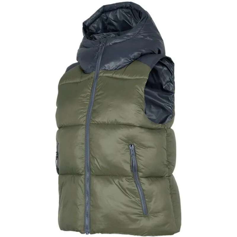 Materiaal: Polyamide, Polyester. Vulling: Synthetisch dons. Ontwerp: Gewoon, gewatteerd. Stoftechnologie: Zacht, Thermisch. Halslijn: Kapitein. Mouwtype: Mouwloos. Kap Kenmerken: Contrast, Opgenaaid. Zakken: 2 Zijzakken, Rits. Bevestiging: Volledige ritssluiting. S: 36 in. M: 37,5 in. L: 40 in. XL: 42,5 in. XXL: 45 in.