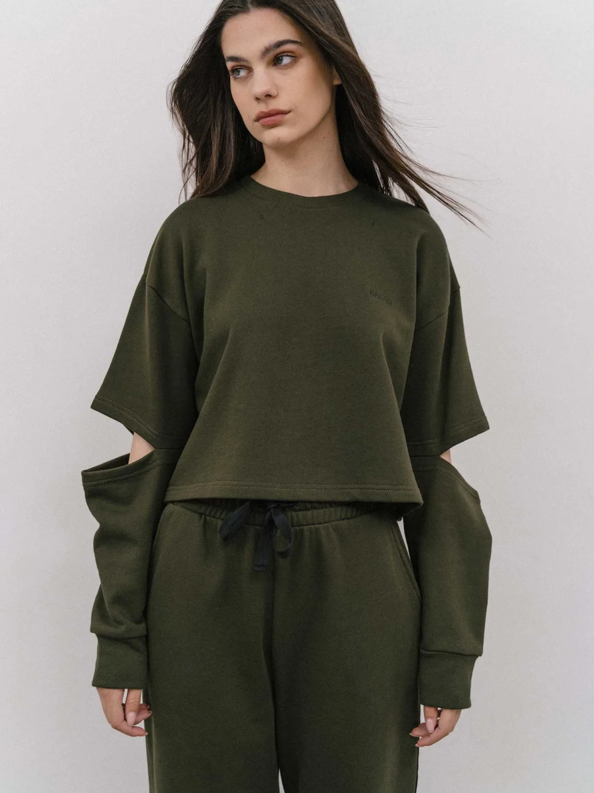 Materiaal: Katoen; Motief: Effen; Details: Cut-outs; Pasvorm: Losse pasvorm; Armlengte: Lange mouw; Lengte: Korte pasvorm