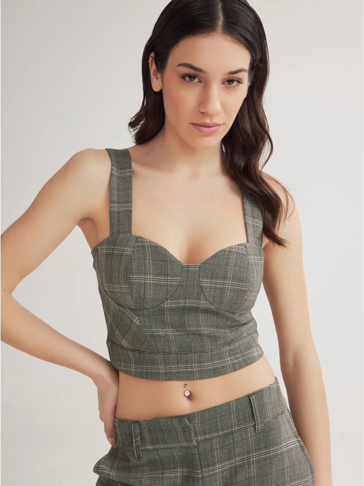 Design: Rug rits; Halstype: Carmen hals; Motief: Geruit; Extra's: All-over patroon; Pasvorm: Slanke pasvorm; Armlengte: Mouwloos; Lengte: Korte pasvorm
