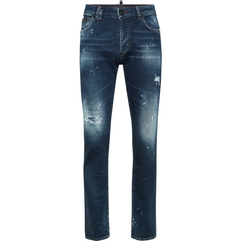 Vergeet de routine en kies voor iets totaal origineels zoals deze jeans met een sterk karakter. Gebruikt effect denim met scheuren Enkele metalen knoop Opgenaaide patch met logo Opgenaaid label Pasvorm: Super recht
