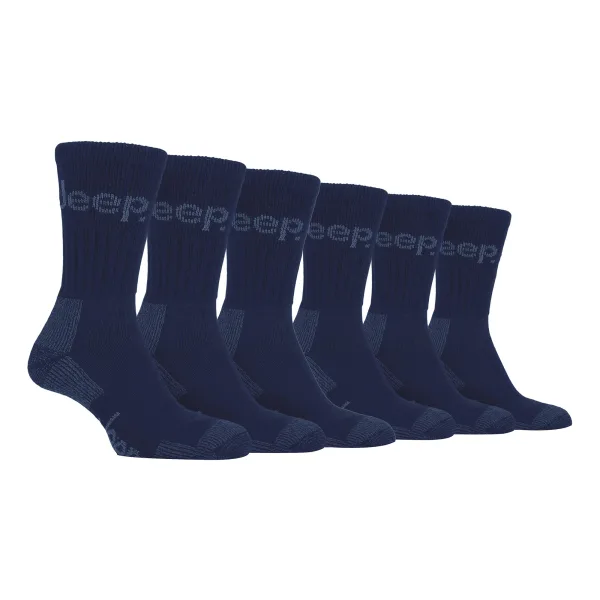 6 Paar Luxe Jeep Terrain Sokken voor Hikers - Sinds 1941 staat Jeep voor vrijheid en avontuur. Deze Jeep Terrain Sokken zijn ontworpen voor optimale prestaties in ruige omstandigheden, met comfort, duurzaamheid en bescherming tijdens het wandelen en buitensportactiviteiten. De gevoerde zolen van hiel tot teen absorberend schokken, waardoor ongemak tijdens lange tochten wordt verminderd. Gemaakt van een katoenrijke mix, voeren ze vocht af om de voeten droog en comfortabel te houden, terwijl ze een stevige, flexibele pasvorm bieden. De chunky, zware stof zorgt voor langdurig gebruik, perfect voor wandelschoenen of dagelijkse avonturen. Verkrijgbaar in vijf stijlvolle kleuren - Steenbeige, Zwart, Groen, Bruin en Marineblauw - en UK maat 6-11. Gemaakt van 80% Katoen, 17% Polyester en 3% Elastaan, bieden deze sokken zachtheid, duurzaamheid en superieure ondersteuning. Extra Productdetails: Jeep Terrain Sokken, 6 Paar, Gevoerde zolen voor comfort, Katoenrijke stof voor vochtregulatie, Ideaal voor wandelen en buitengebruik, Verkrijgbaar in 5 kleuren: Steenbeige, Zwart, Groen, Bruin, Marineblauw, UK Maat 6-11, Samenstelling: 80% Katoen, 17% Polyester, 3% Elastaan, Duurzaam en langdurig, Perfect voor wandelschoenen en ruig terrein.