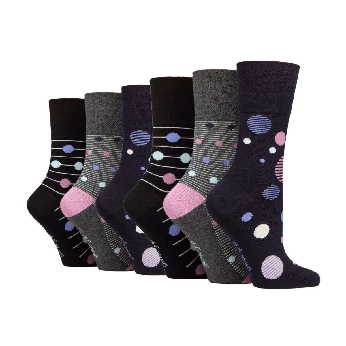 Gentle Grip NIET ELASTISCHE Bamboosokken: Als comfort jouw belangrijkste doel is bij het zoeken naar een paar sokken, dan kun je deze Gentle Grip NIET ELASTISCHE bamboosokken beschouwen als een van de beste. Bamboe wordt geprezen als de moderne 'supervezel'; Gentle Grip is een gerenommeerd sokkenmerk dat zich uitsluitend richt op comfort en een NIET ELASTISCHE techniek die sterk aanbevolen wordt om druk op de voet te verminderen... alles lijkt juist te zijn aan deze sok. Waarom bamboe geweldig is: Bamboe staat bekend als een geweldig materiaal. Hier zijn 3 redenen waarom bamboe de beste is. Vochtregulerend - Bamboevezels regelen van nature de temperatuur, dus het is een briljante vezel die in sokken is gebreid. Gentle Grip – Niet-elastische honingraat-top: Met een speciaal ontworpen honingraat-top zijn de zachte Gentle Grip-sokken comfortabeler voor alle dragers, maar vooral als je worstelt met circulatieproblemen. Het combineren van een natuurlijke bamboemix en NIET ELASTISCHE honingraat-top Gentle Grip-sokken in één pakket zou het perfecte paar sokken voor jouw voeten kunnen zijn als comfort jouw belangrijkste doel is. Extra productdetails: * 6 paar pakket, bamboosokken, NIET ELASTISCH, honingraat-top, verstevigde hiel en teen, 5 ontwerpen om uit te kiezen, 77% Viscose Bamboe, 17% Polyester en 1% elastaan, maat 4-8 uk 37-42 eur 5-8 us, machinewasbaar