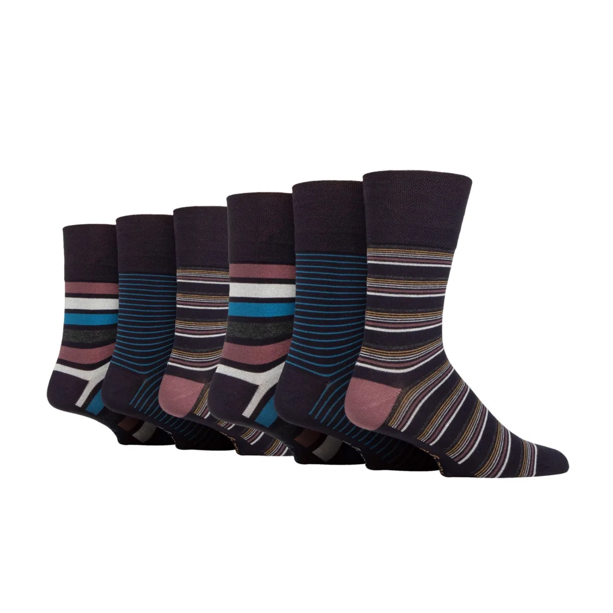 Zachte Grip NIET ELASTISCHE Bamboosokken: Als comfort jouw enige doel is bij het zoeken naar een paar sokken, beschouw dan deze Zachte Grip NIET ELASTISCHE bamboosokken als een van de beste. Bamboe wordt geprezen als de moderne ‘supervezel’, Zachte Grip is een gewaardeerd sokkenmerk dat zich volledig richt op comfort en een NIET ELASTISCHE techniek sterk wordt aanbevolen om druk op de voet te verminderen... alles lijkt perfect aan deze sok. Waarom bamboe geweldig is: Bamboe staat algemeen bekend als een fantastisch materiaal. Hier zijn 3 redenen waarom bamboe de beste keuze is. Vochtregulerend – Bamboevezels regelen van nature de temperatuur, dus een geweldige vezel die in sokken is gebreid. Antibacterieel – Bamboe onttrekt vocht, waardoor er geen ruimte is voor schimmels, en daardoor potentiële voetinfecties voorkomt. Superzacht – Bamboe wordt beschouwd als een luxevezel die de voeten zacht en comfortabel houdt. Zachte Grip – Niet-elastische honingraat bovenkant: Het combineren van een natuurlijke bamboemix en NIET ELASTISCHE honingraat bovenkant in één pakket kan het perfecte paar sokken voor jouw voeten zijn als comfort jouw belangrijkste doel is. Extra productdetails: * 6 paar per verpakking, Bamboosokken, NIET ELASTISCH, Honingraat bovenkant, Versterkte hak en teen, 5 ontwerpen om uit te kiezen, 77% Viscose Bamboe, 17% Polyester en 1% elastaan, Maat 6-11 uk, 39-45 eur, 7-12 us, Machinewasbaar.