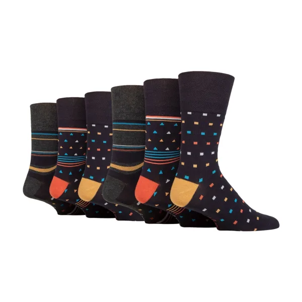Zachte Grip NON ELASTISCHE Bamboosokken: Als comfort je belangrijkste doel is bij het zoeken naar een paar sokken, beschouw dan deze paar Zachte Grip NON ELASTISCHE bamboosokken als een van de beste. Bamboe wordt geprezen als de moderne ‘supervezel’, en Zachte Grip is een gerenommeerd sokkenmerk dat zich volledig richt op comfort. De NON ELASTISCHE techniek wordt ten zeerste aanbevolen om druk in de voet te verminderen... alles lijkt aan deze sok te kloppen. Waarom bamboe geweldig is: Bamboe staat algemeen bekend als een fantastisch materiaal. Hier zijn 3 redenen waarom bamboe de beste is. Vochtregulerend – Bamboevezels controleren van nature de temperatuur, waardoor het een schitterende vezel is om in sokken te breien. Antibacterieel – Bamboe onttrekt het vocht, waardoor er geen ruimte is voor manoeuvre, en dus potentiële voetinfecties worden voorkomen. Superzacht – Bamboe wordt beschouwd als een luxevezel die de voeten zacht en comfortabel houdt. Zachte Grip – Non-elastische honingraat-top: Het combineren van een natuurlijke bamboemix en NON ELASTISCHE honingraat-top zachte grip sokken in één pakket zou het perfecte paar sokken voor je voeten kunnen zijn als comfort je belangrijkste doel is. Extra productdetails: * 6 paar verpakking, bamboosokken, NON ELASTISCH, honingraat-top, verstevigde hiel en teen, 5 ontwerpen om uit te kiezen, 77% Viscose Bamboe 17% Polyester en 1% elastaan, Maat 6-11 UK, 39-45 EUR, 7-12 VS, machinewasbaar.