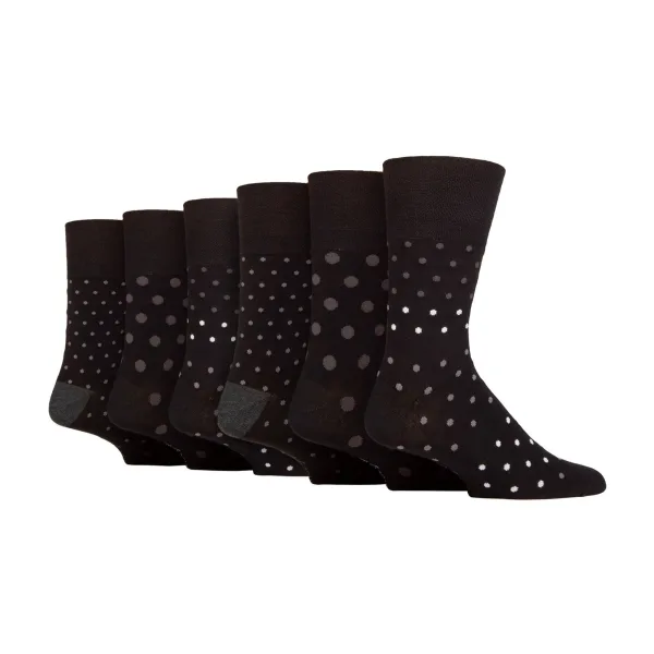 Zachte Grip NIET ELASTISCHE Bamboosokken: Als comfort jouw enige doel is bij het zoeken naar een paar sokken, beschouw dan deze Zachte Grip NIET ELASTISCHE bamboosokken als een van de beste. Bamboe wordt geprezen als de moderne ‘supervezel’, Zachte Grip is een gewaardeerd sokkenmerk dat zich volledig richt op comfort en een NIET ELASTISCHE techniek sterk wordt aanbevolen om druk op de voet te verminderen... alles lijkt perfect aan deze sok. Waarom bamboe geweldig is: Bamboe staat algemeen bekend als een fantastisch materiaal. Hier zijn 3 redenen waarom bamboe de beste keuze is. Vochtregulerend – Bamboevezels regelen van nature de temperatuur, dus een geweldige vezel die in sokken is gebreid. Antibacterieel – Bamboe onttrekt vocht, waardoor er geen ruimte is voor schimmels, en daardoor potentiële voetinfecties voorkomt. Superzacht – Bamboe wordt beschouwd als een luxevezel die de voeten zacht en comfortabel houdt. Zachte Grip – Niet-elastische honingraat bovenkant: Het combineren van een natuurlijke bamboemix en NIET ELASTISCHE honingraat bovenkant in één pakket kan het perfecte paar sokken voor jouw voeten zijn als comfort jouw belangrijkste doel is. Extra productdetails: * 6 paar per verpakking, Bamboosokken, NIET ELASTISCH, Honingraat bovenkant, Versterkte hak en teen, 5 ontwerpen om uit te kiezen, 77% Viscose Bamboe, 17% Polyester en 1% elastaan, Maat 6-11 uk, 39-45 eur, 7-12 us, Machinewasbaar.