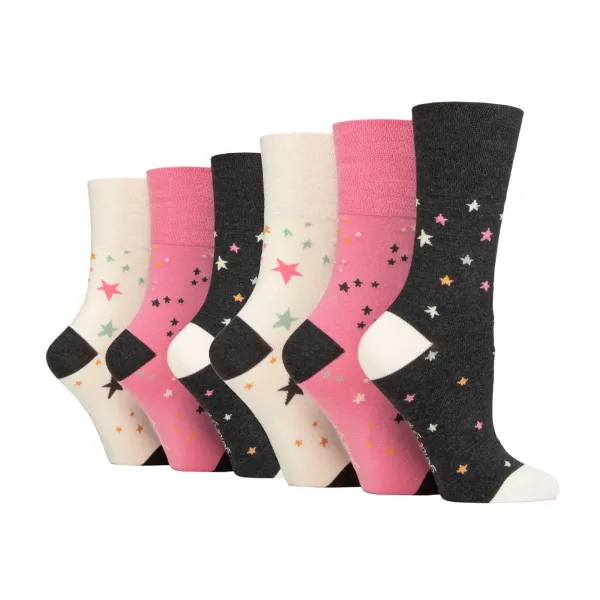 Zachte Grip NIET ELASTISCHE Bamboosokken: Als comfort jouw enige doel is bij het zoeken naar een paar sokken, beschouw dan dit paar Zachte Grip NIET ELASTISCHE bamboosokken als een van de beste. Bamboe wordt geprezen als de moderne ‘supervezel’. Zachte Grip is een gerenommeerd sokkenmerk dat zich volledig richt op comfort en een NIET ELASTISCHE techniek die sterk aanbevolen wordt om druk op de voet te verminderen... alles lijkt perfect te zijn aan deze sok. Waarom bamboe geweldig is: Bamboe staat erom bekend een fantastisch materiaal te zijn. Hier zijn 3 redenen waarom bamboe de beste keuze is. Vochtafvoerend – Bamboevezels regelen van nature de temperatuur, waardoor het een briljante vezel is om in sokken te verwerken. Zachte Grip – Niet-elastische honingraat bovenkant: Met een speciaal ontworpen honingraat bovenkant zijn de zachte Zachte Grip sokken comfortabeler voor alle dragers, vooral als je moeite hebt met circulatieproblemen. Het combineren van een natuurlijke bamboemix en NIET ELASTISCHE honingraat bovenkant in één pakket kan het perfecte paar sokken voor je voeten zijn als comfort jouw hoofdprioriteit is. Extra productdetails: * 6 paar verpakking, Bamboosokken, NIET ELASTISCH, Honingraat bovenkant, Versterkte hiel en teen, 5 ontwerpen om uit te kiezen, 77% Viscose Bamboe 17% Polyester en 1% elastaan, Maat 4-8 UK 37-42 EUR 5-8 US, Machinewasbaar.