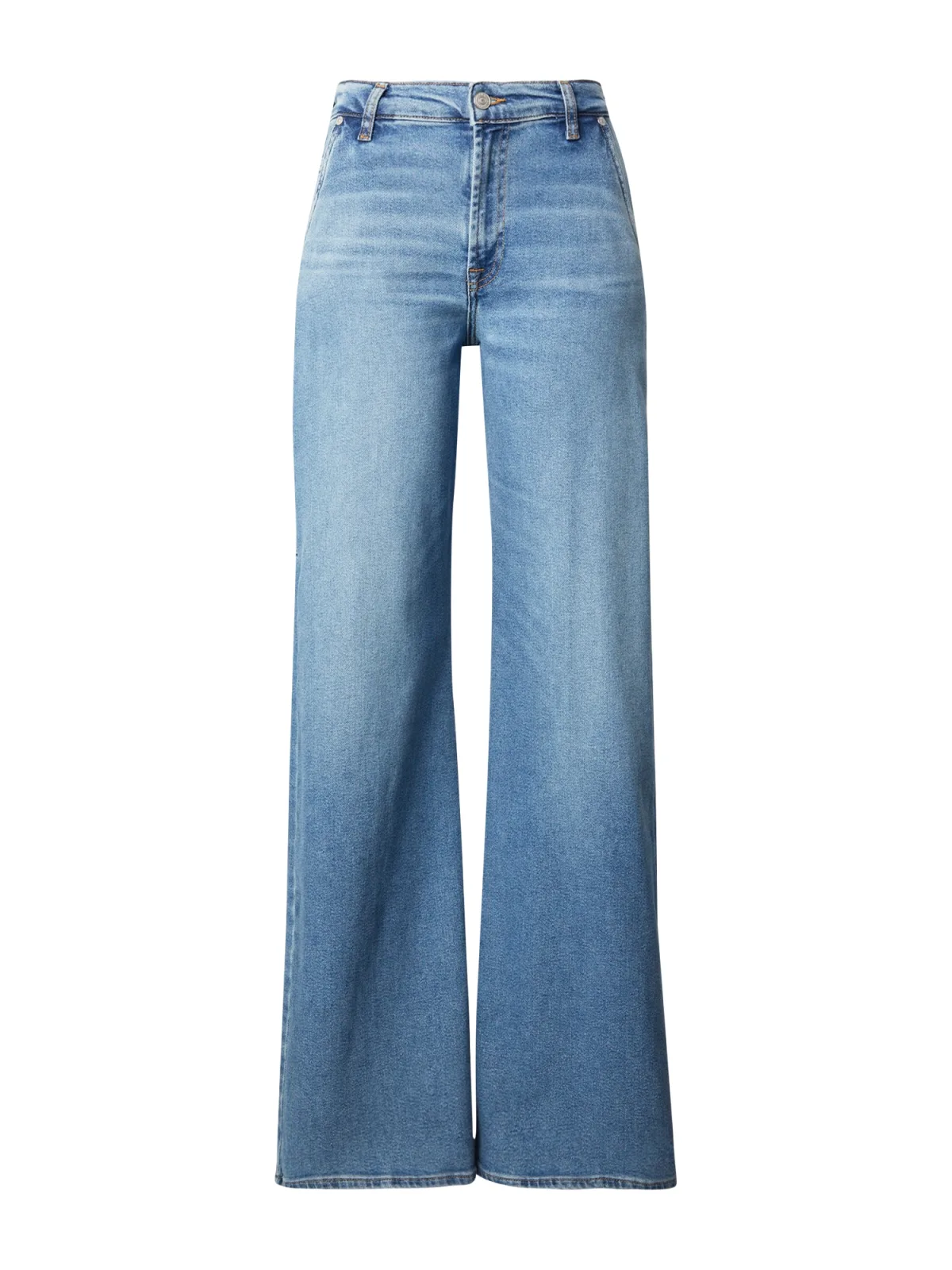 Design: Gevoerde zoom/rand, Ritssluiting, 5-pocket-style; Type sluiting: Ritssluiting; Materiaal: Denim; Motief: Effen; Extra's: Studs, Contrasterende naden, Label patch/label flag, Stevige stof, Riemlussen; Wassing: Blauw denim; Lengte: Lang/maxi; Pasvorm: Wide leg; Taillehoogte: Mid waist