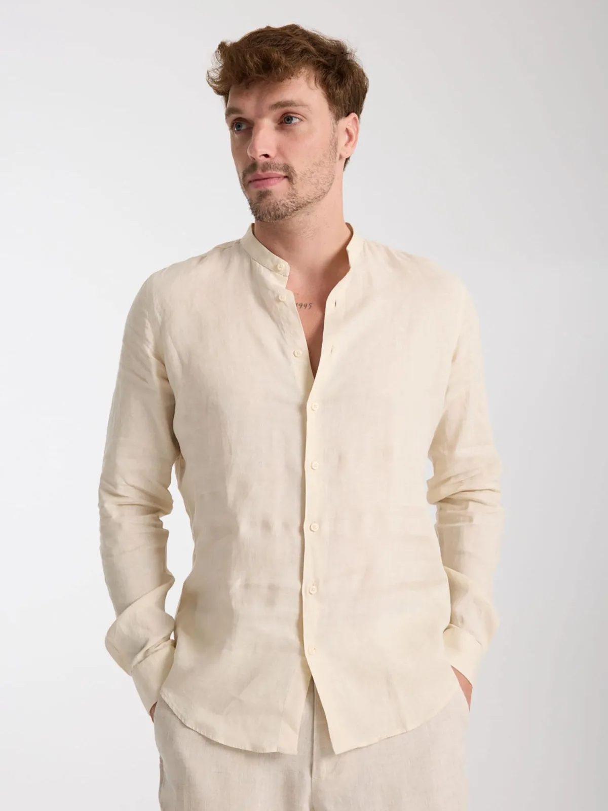 Materiaal: Linnen; Motief: Effen; Kraag: Button-down; Pasvorm: Slim fit; Armlengte: Lange mouw