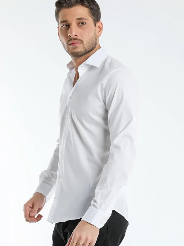 7Camicie Zakelijk overhemd ‘Firenze Essentials Poplin Stretch Man Shirt Light Blue’ wit