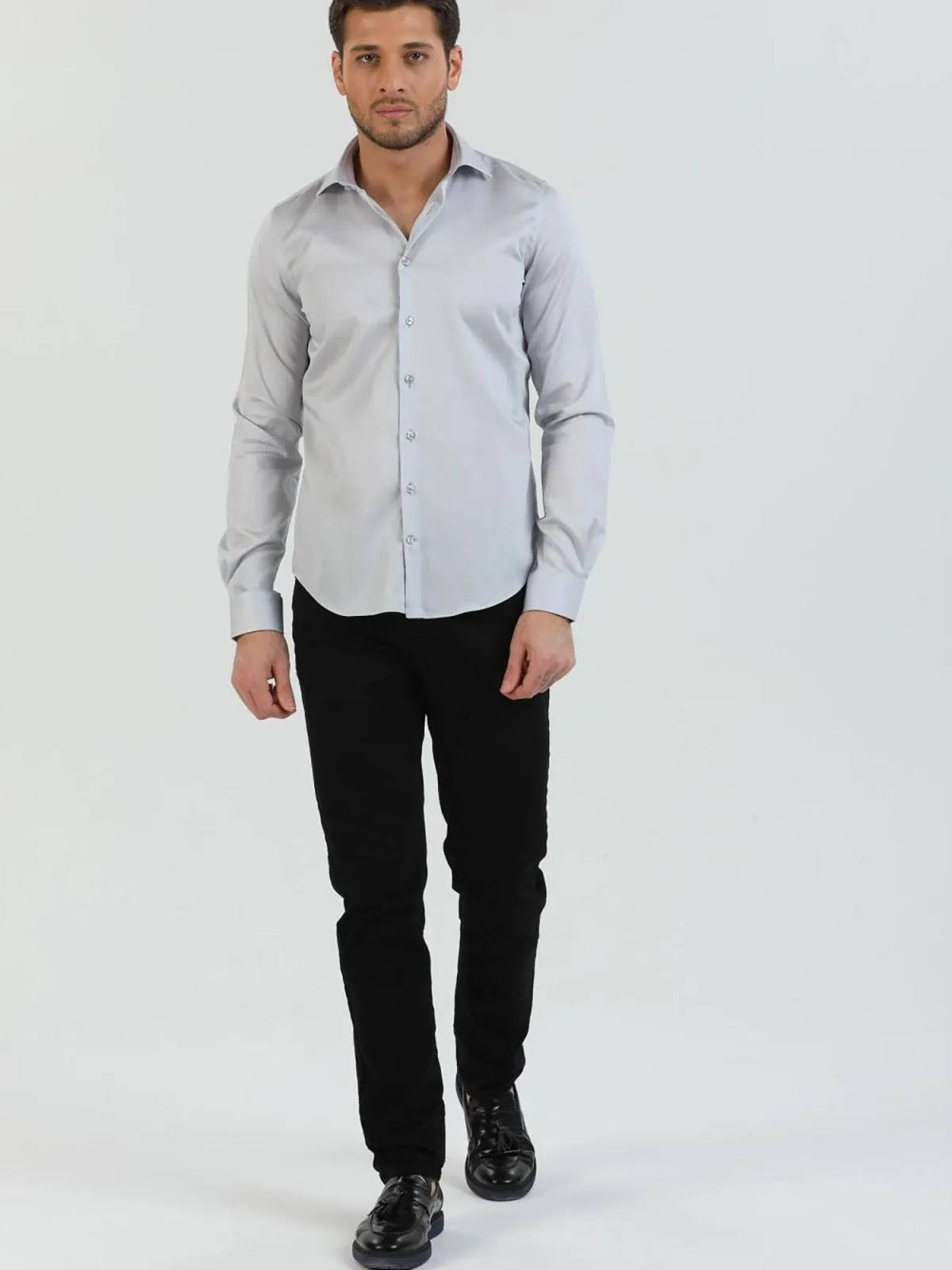 7Camicie Zakelijk overhemd 'Firenze Satin Man Shirt Black' grijs