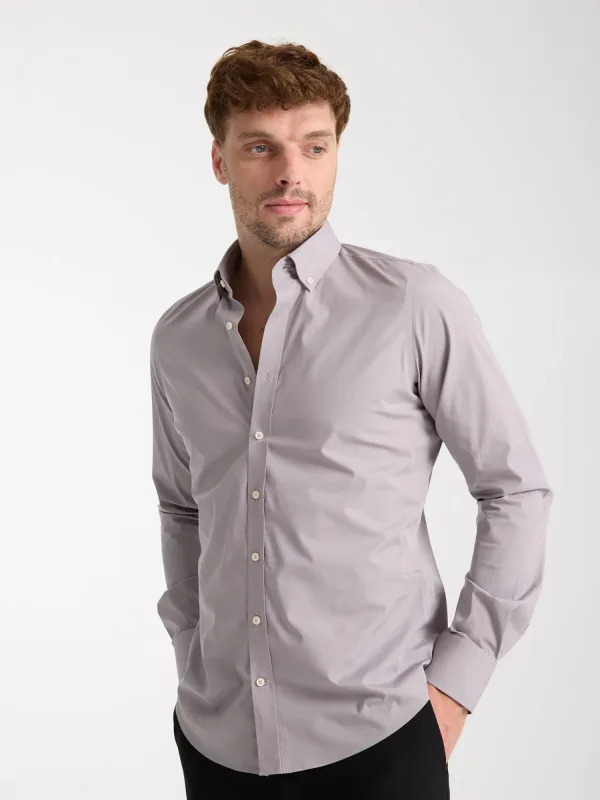7Camicie Zakelijk overhemd ‘Leonardo Essentials Poplin Stretch Man Shirt Light Grey’ lichtgrijs