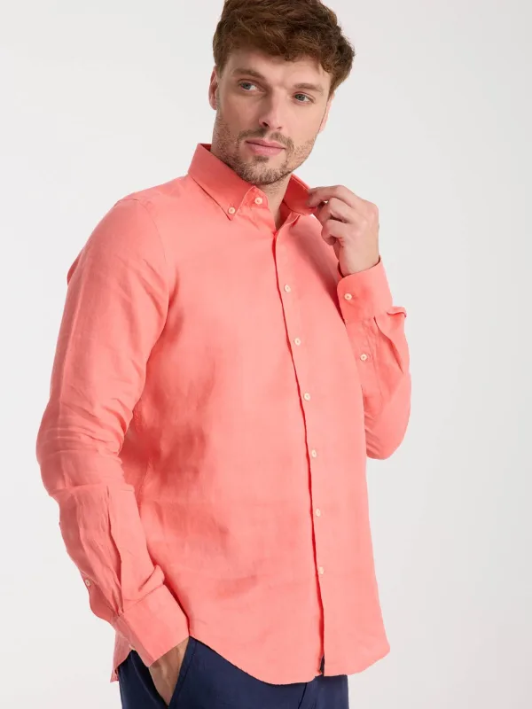 Materiaal: Linnen; Motief: Effen; Kraag: Button-down; Pasvorm: Slim fit; Armlengte: Lange mouw